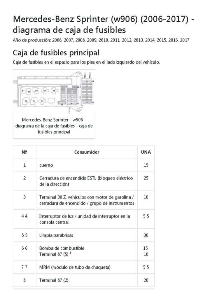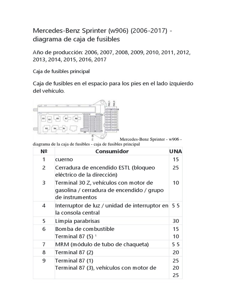 Est actualmente presente slo en la versin de la Sprinter. Diagrama de fusibles mercedes benz sprinter club. Mercedes Benz esquemaelectricoMBsprinterfull pdf Diagramas de autos.